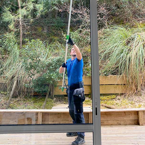 Nettoyage de vitres (intérieures et extérieures, accès difficiles, grandes surfaces) ainsi que pour le nettoyage de terrasses (bois, pierre, carrelage), en milieu résidentiel ou professionnel.
